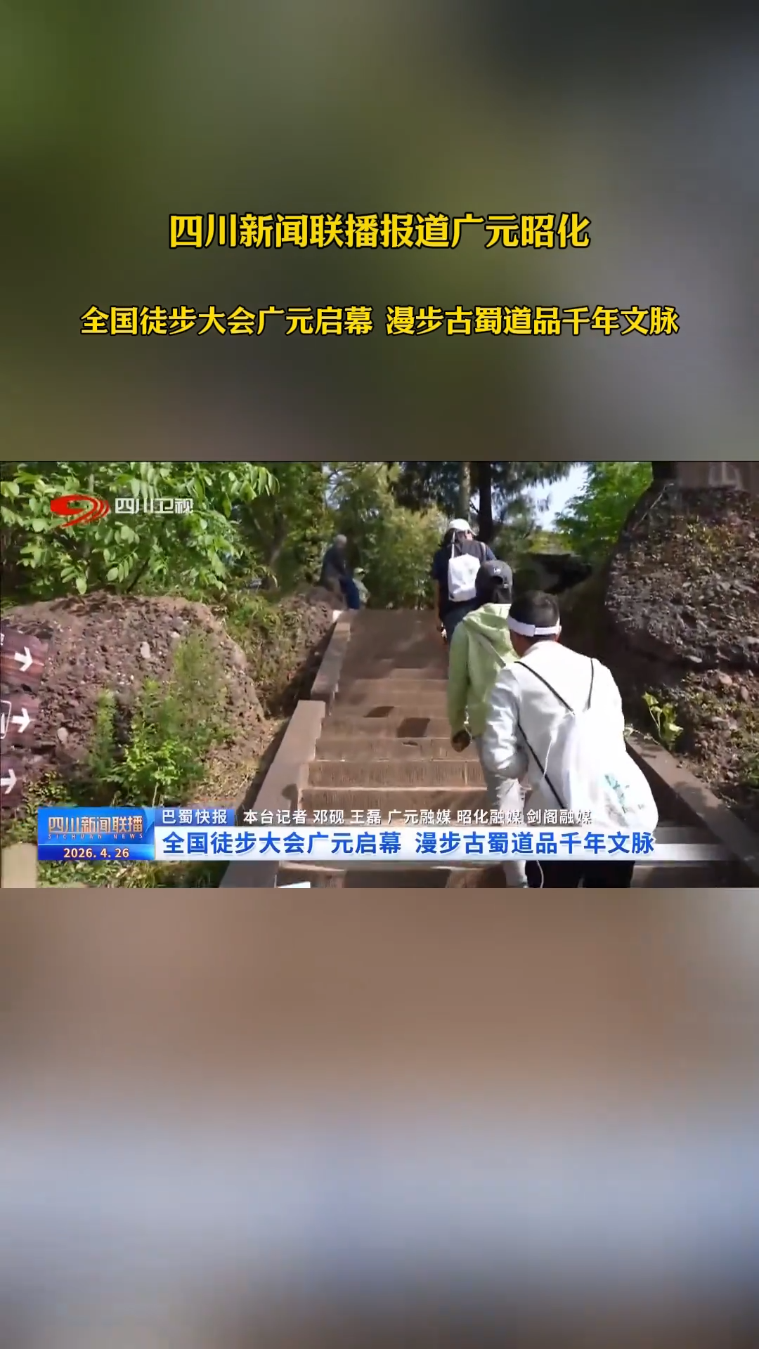 四川新闻联播报道广元昭化:全国徒步大会广元启幕 漫步古道品千年文脉