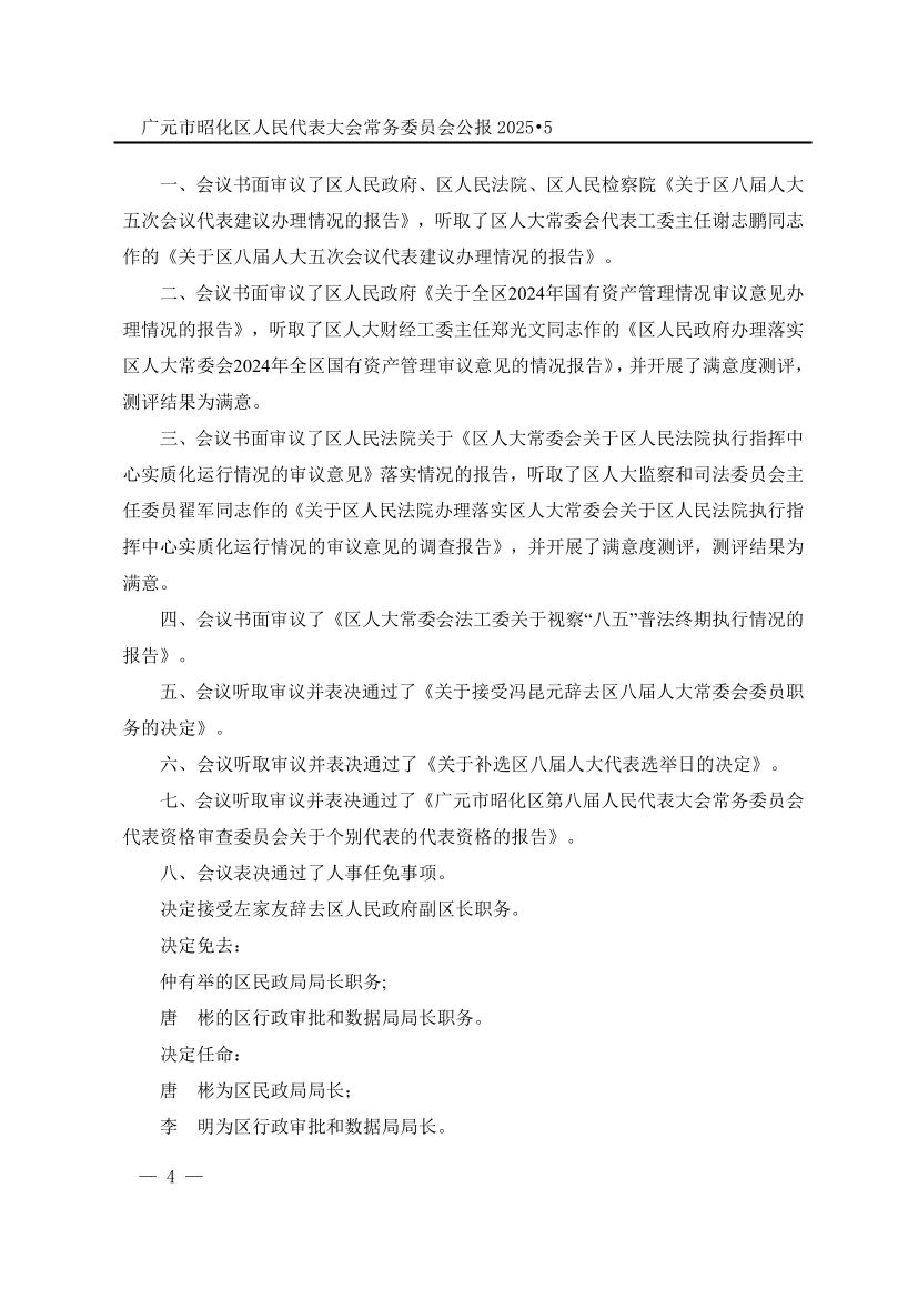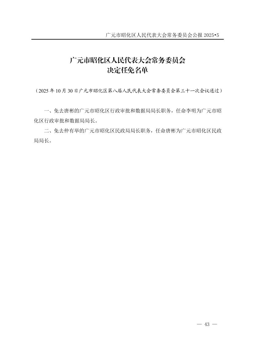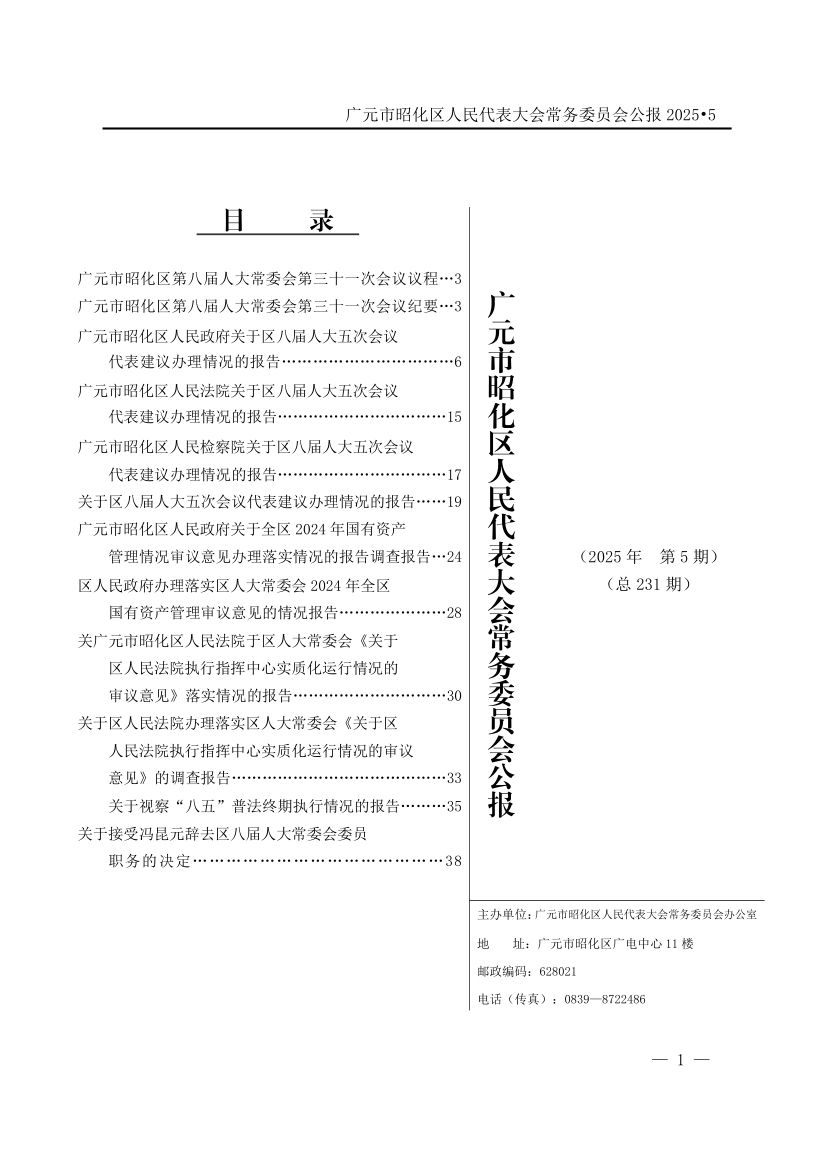 广元市昭化区人民代表大会常务委员会公报(2025年第5期)