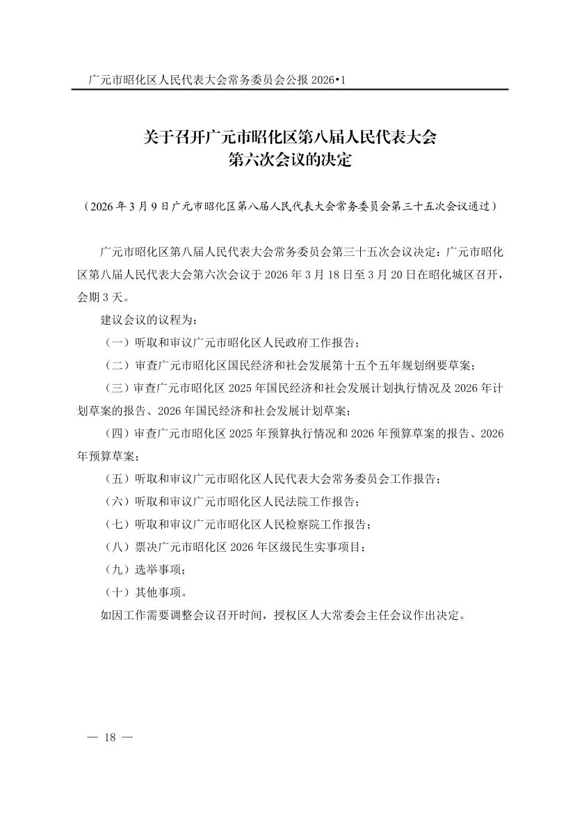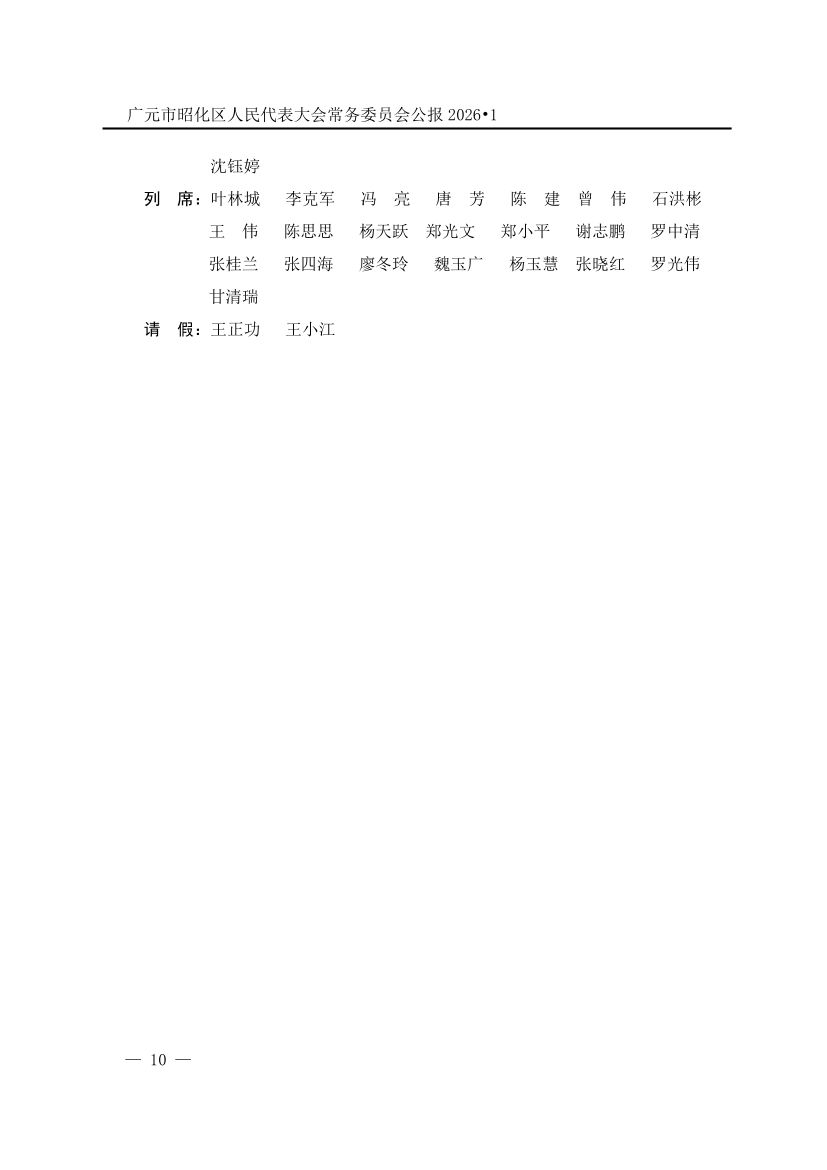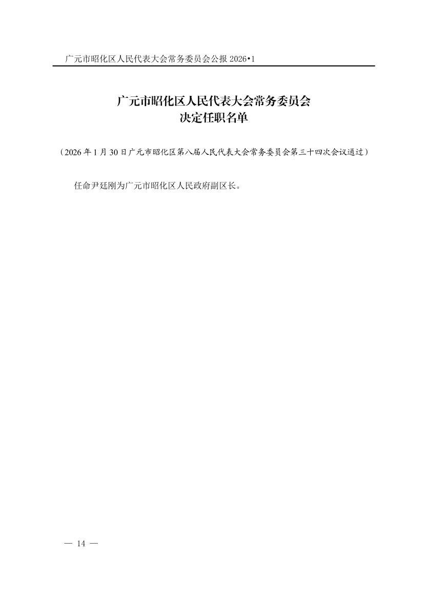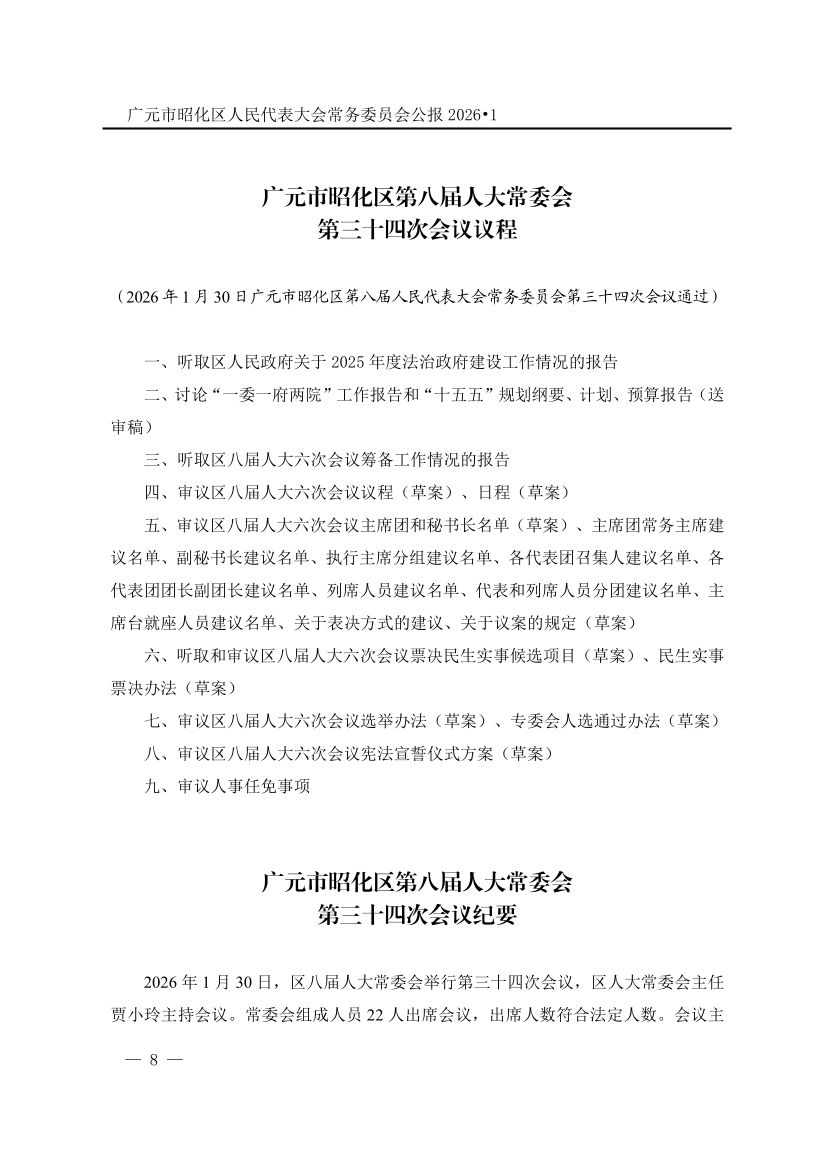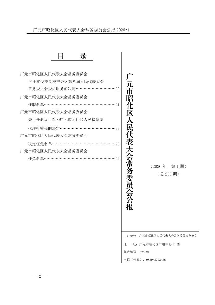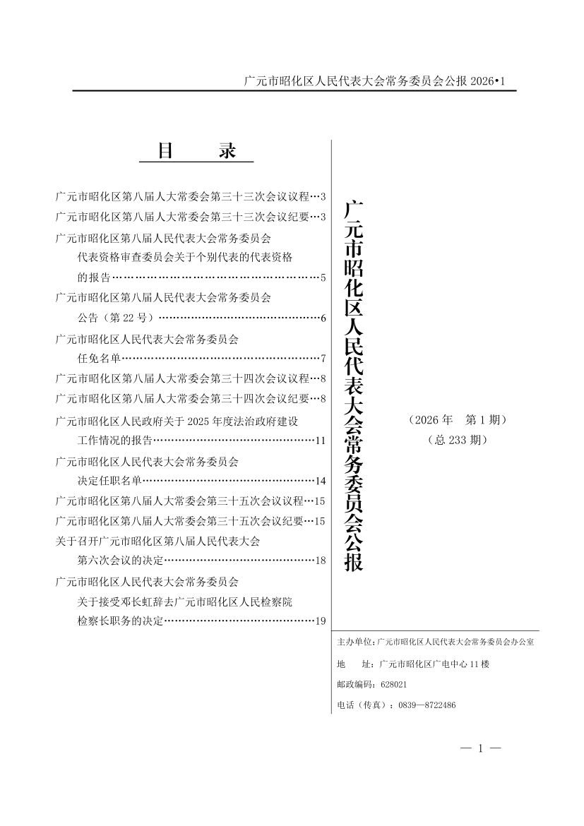 广元市昭化区人民代表大会常务委员会公报(2026年第1期)
