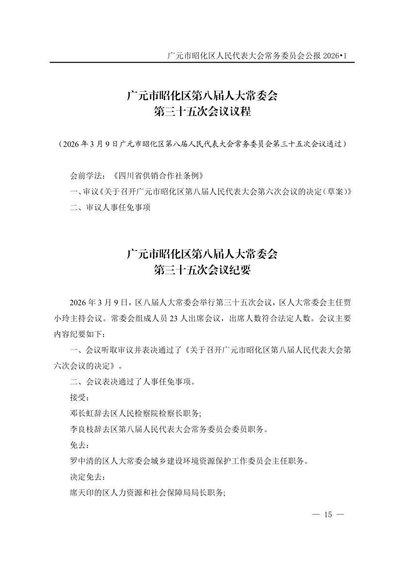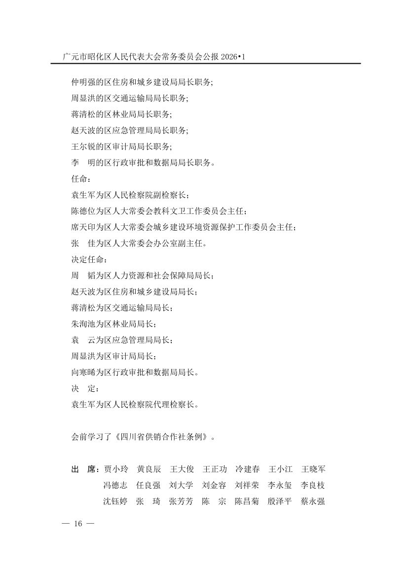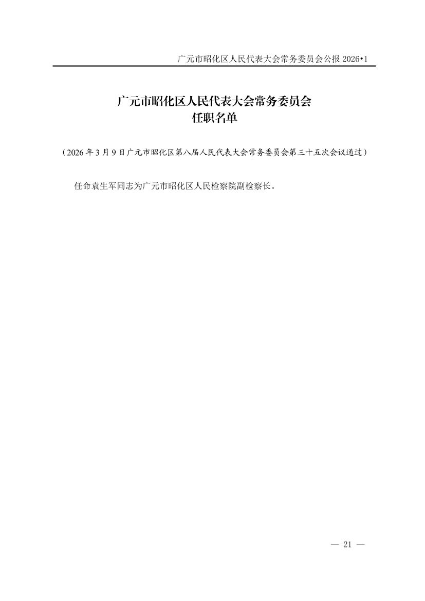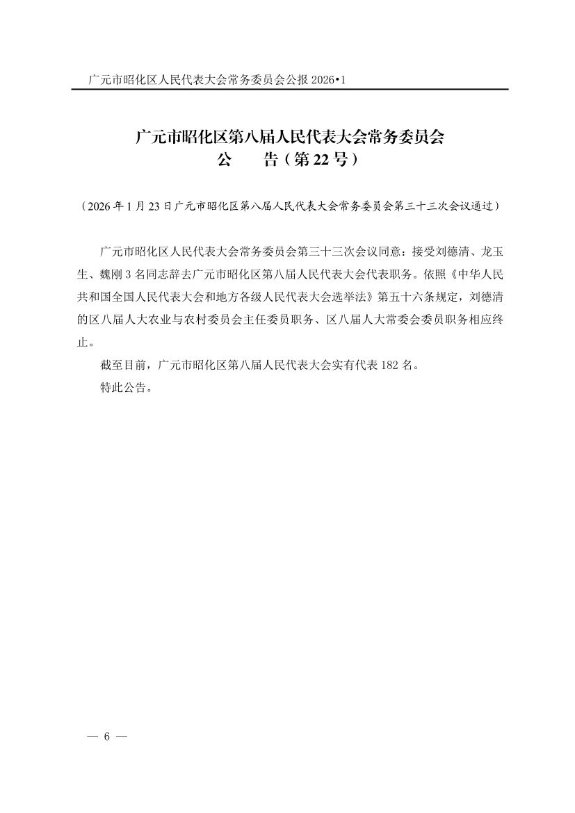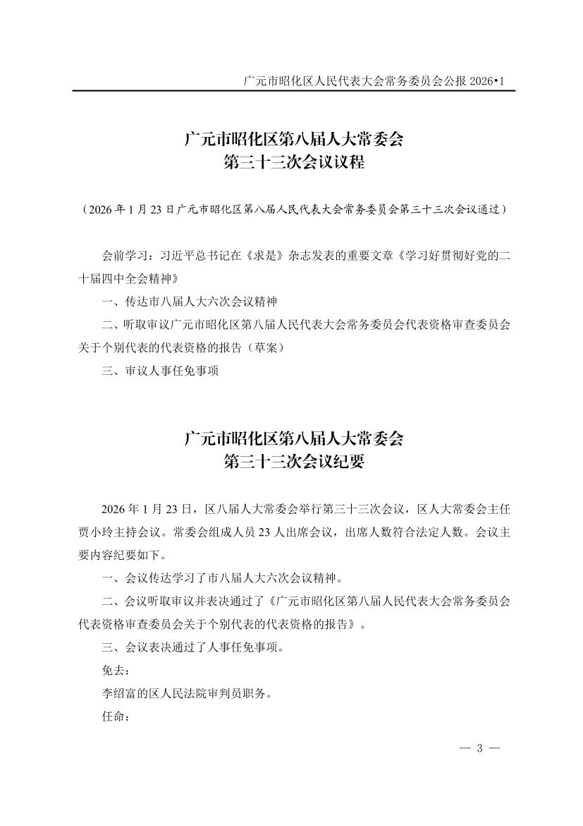 广元市昭化区人民代表大会常务委员会公报(2026年第1期)