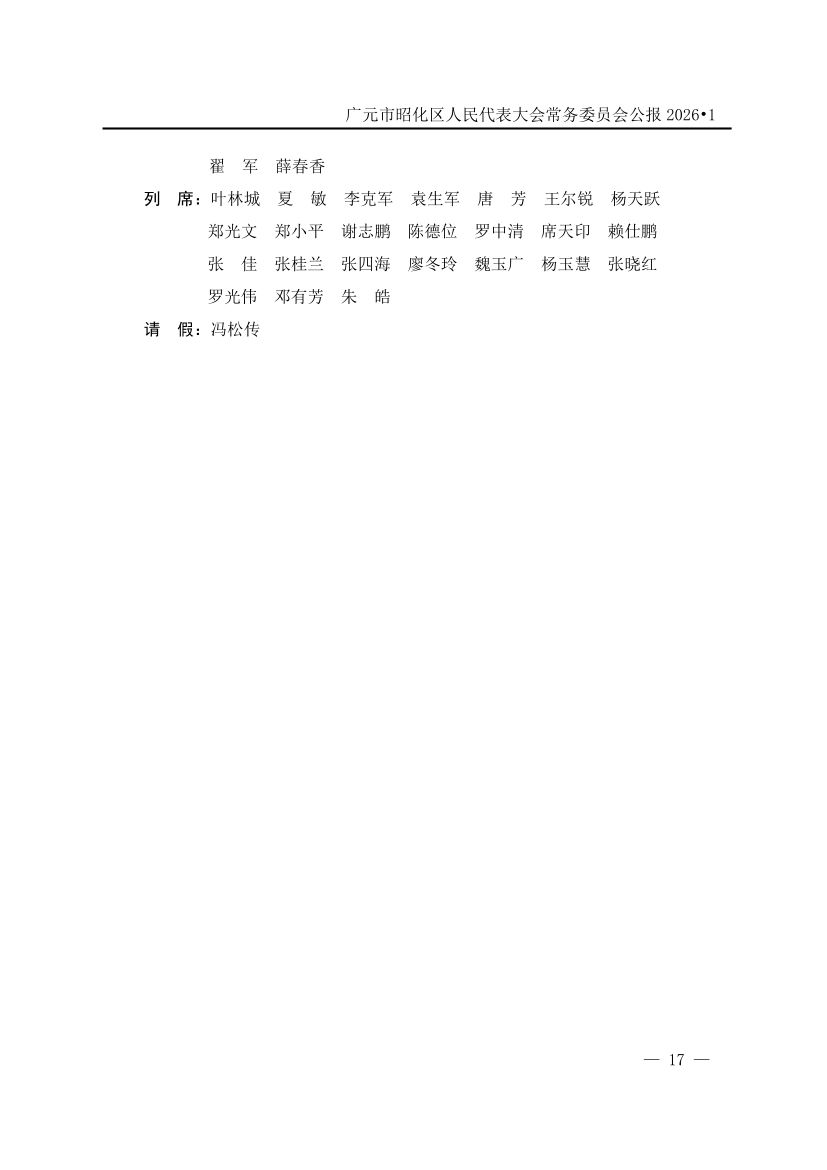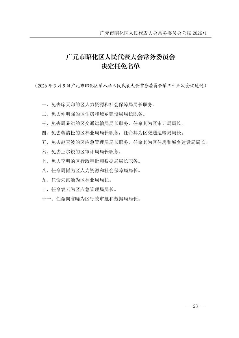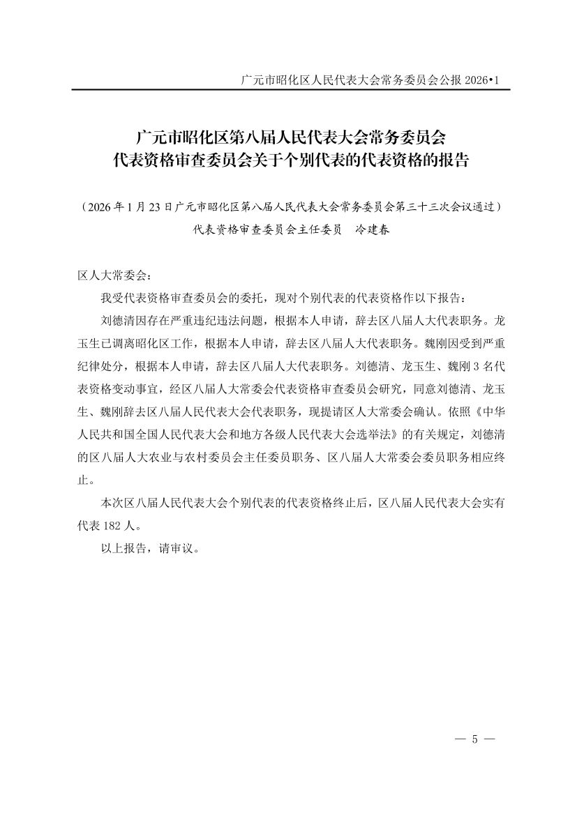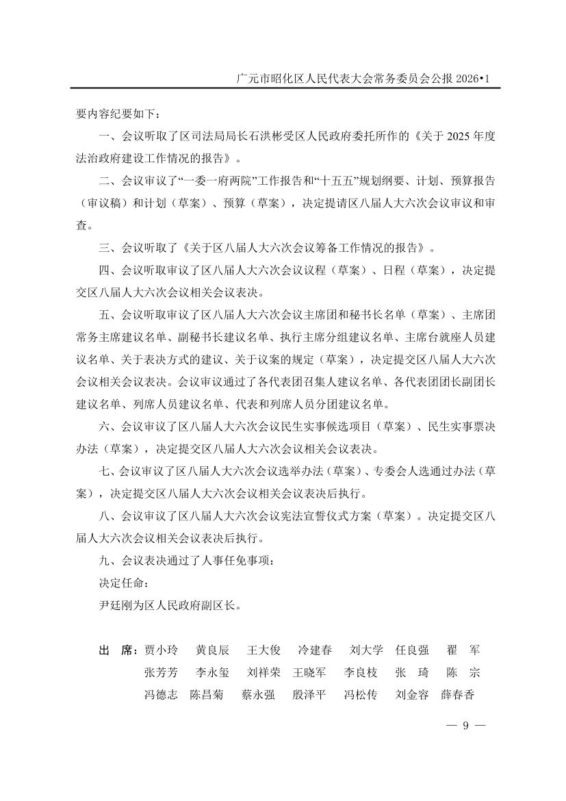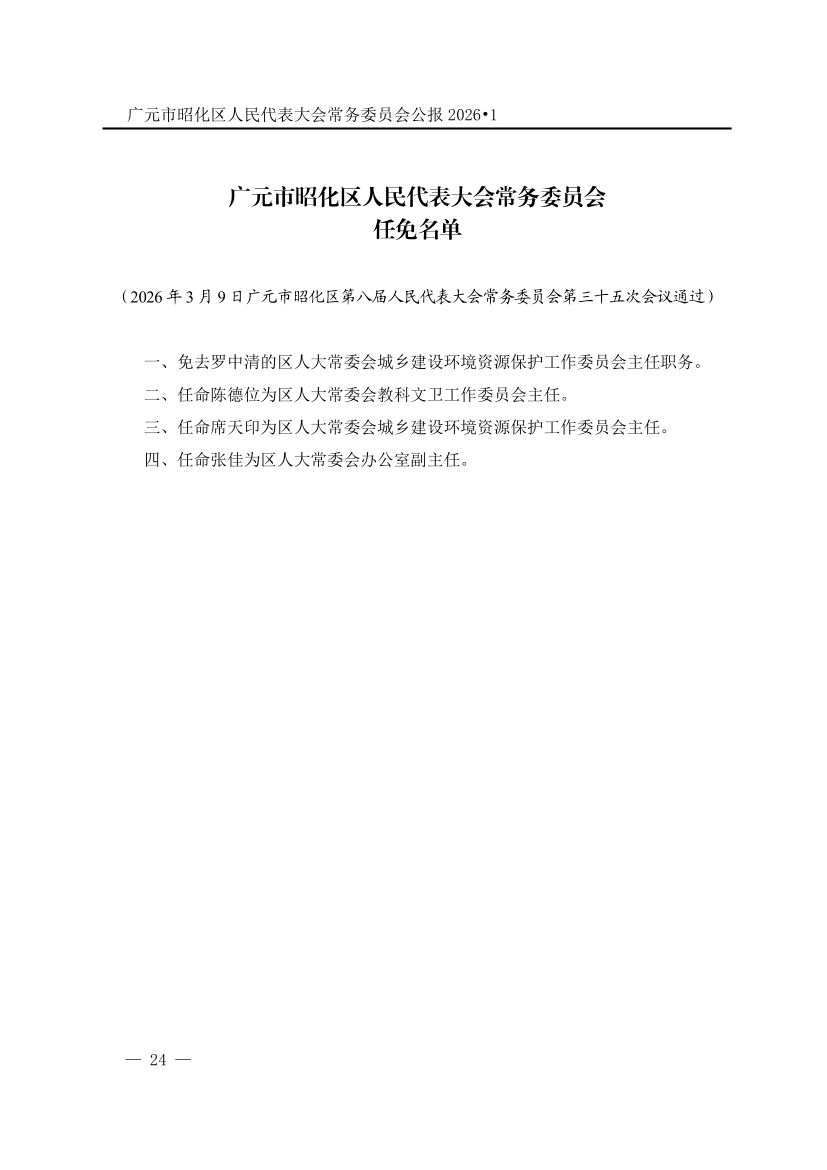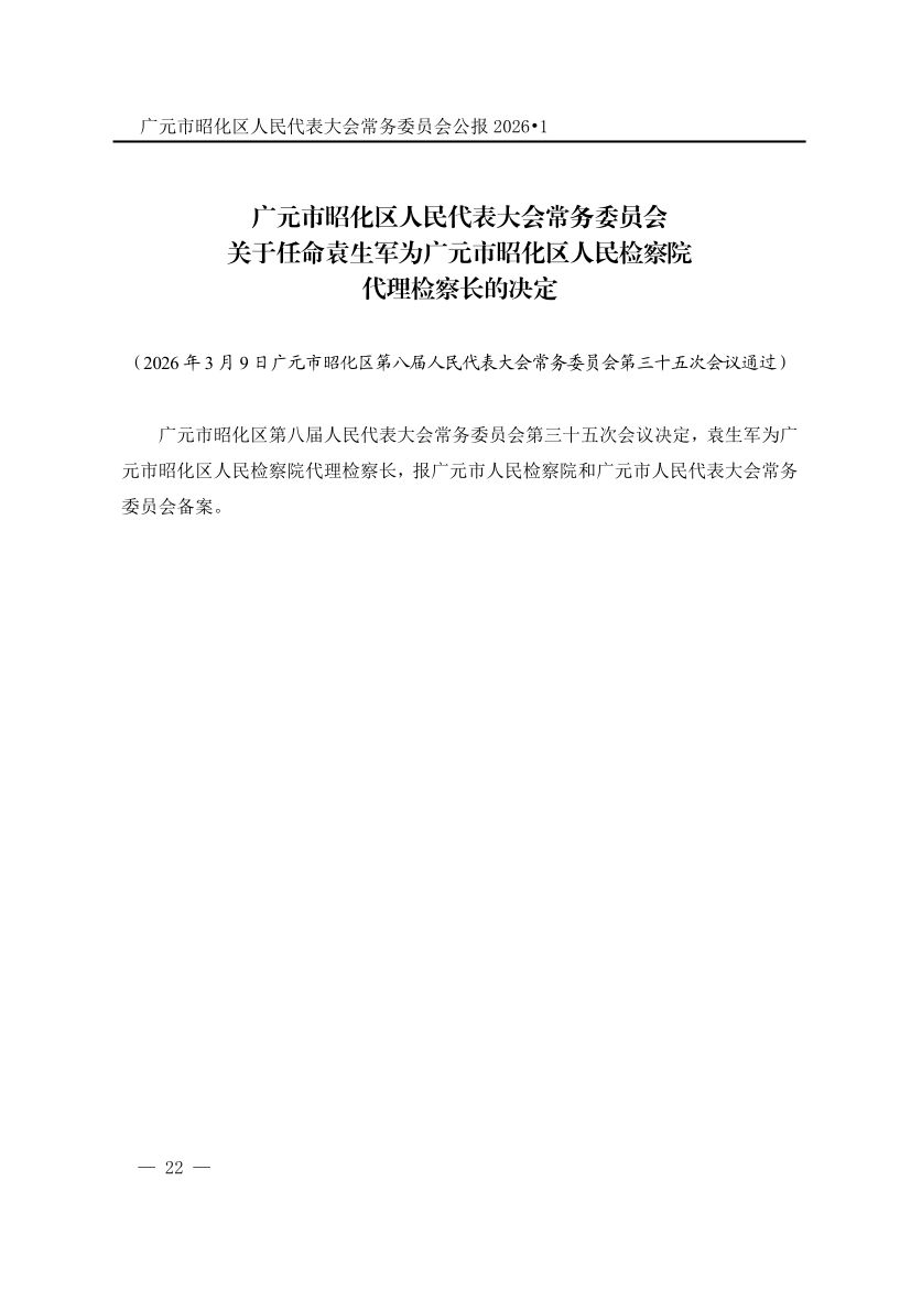 广元市昭化区人民代表大会常务委员会公报(2026年第1期)
