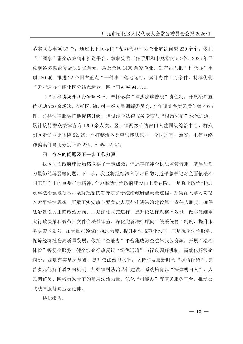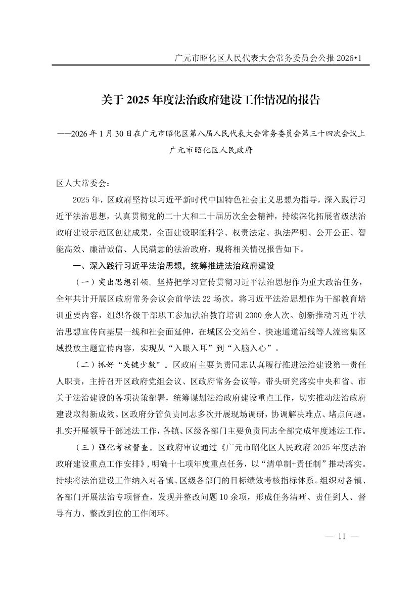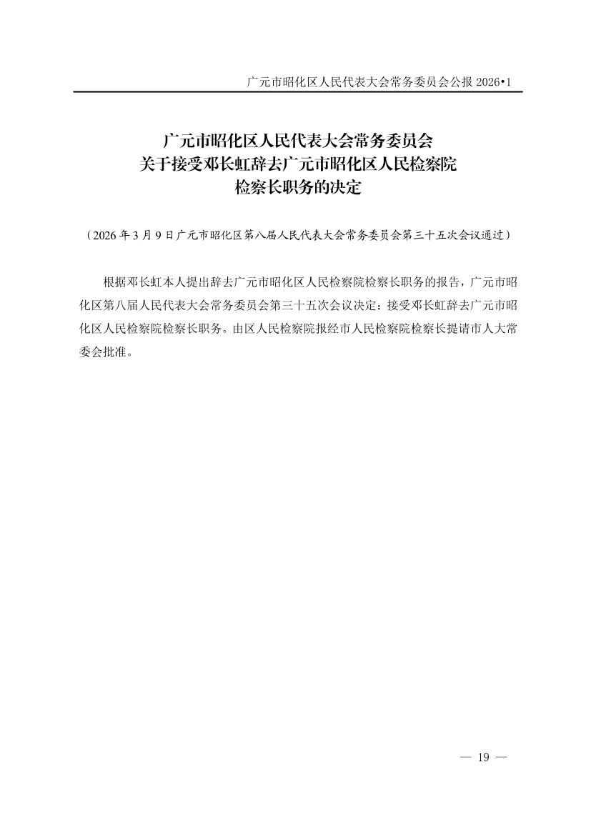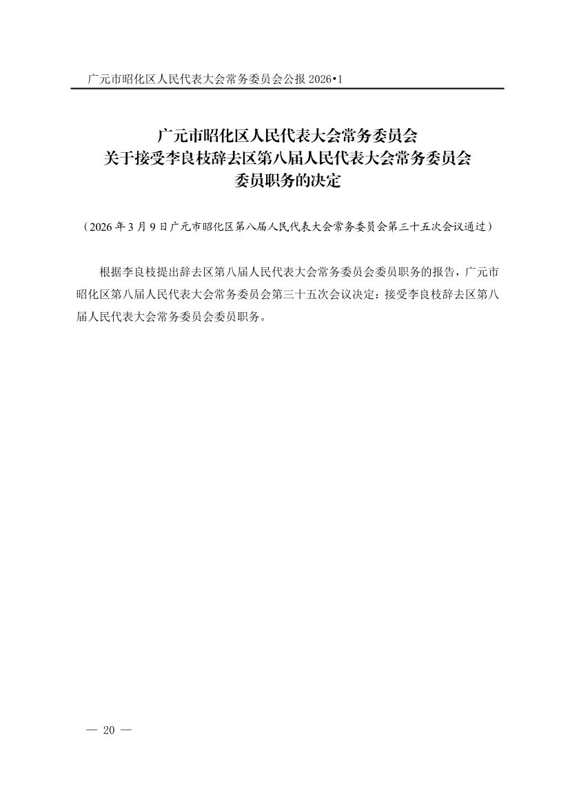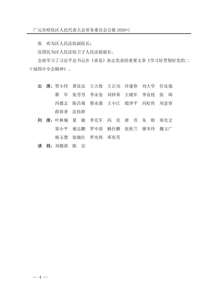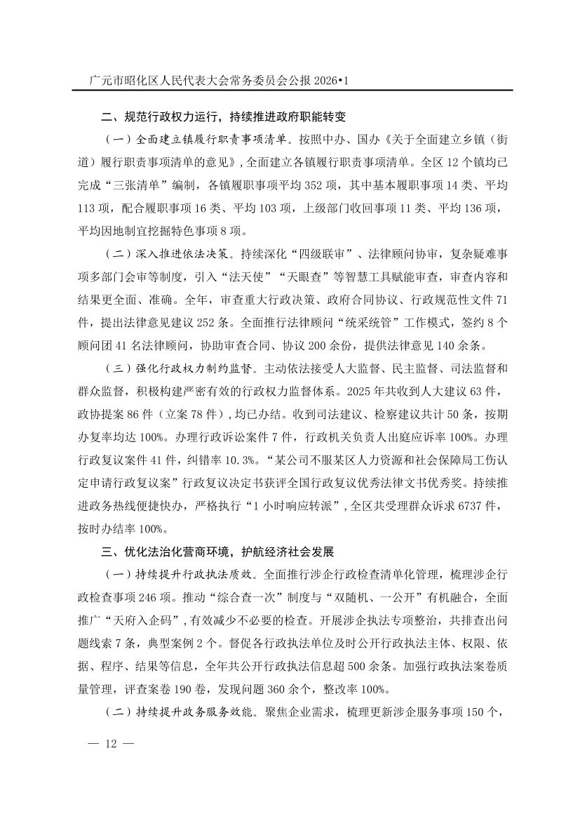 广元市昭化区人民代表大会常务委员会公报(2026年第1期)