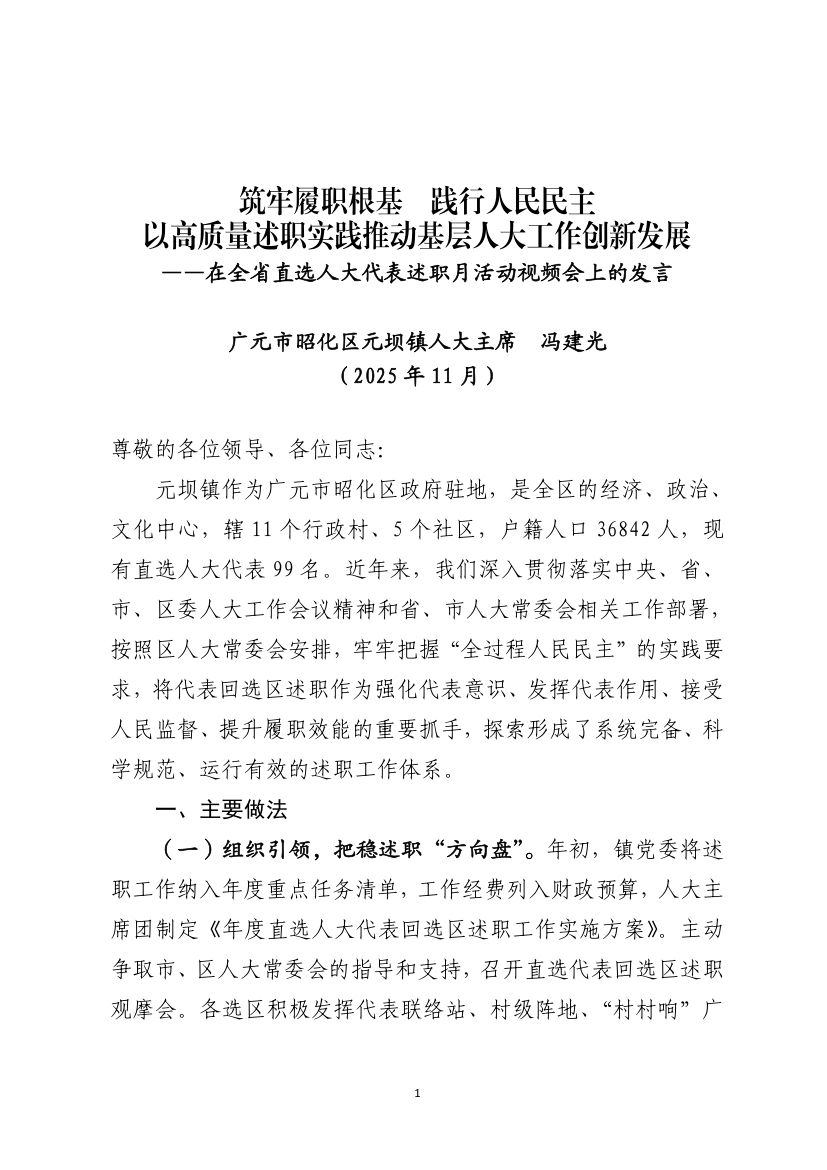 筑牢履职根基 践行人民民主 以高质量述职实践推动基层人大工作创新发展 ——在全省直选人大代表述职月活动视频会上的发言
