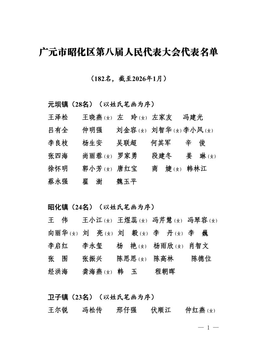 广元市昭化区第八届人民代表大会代表名单