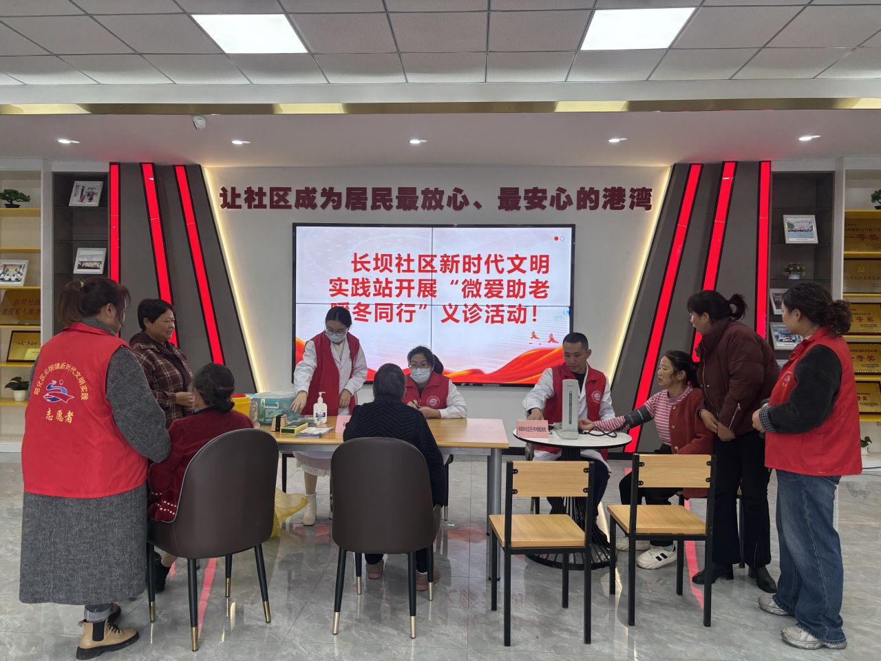 为切实关爱社区老年群体健康,让暖心服务触手可及,长坝社区新时代文明实践站聚焦老年人常见健康需求,精心组织“微爱助老 暖冬同行”主题义诊活动。活动特邀中医院医护志愿者亲临现场,为辖区老年人提供免费血压血糖检测、慢性病咨询、用药指导、康复针灸理疗及健康养生知识普及等服务。